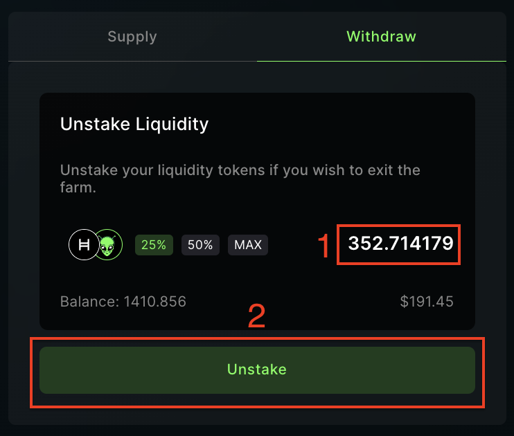 Note: If you do not have LP tokens, you must first supply liquidity.