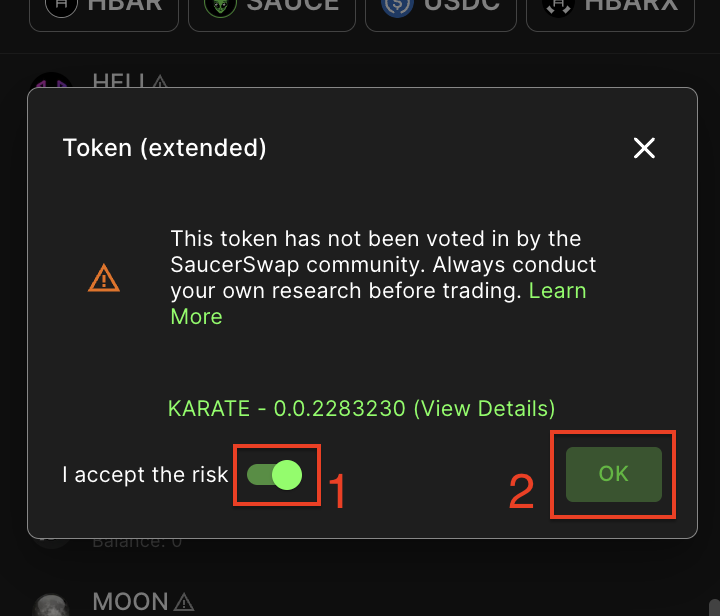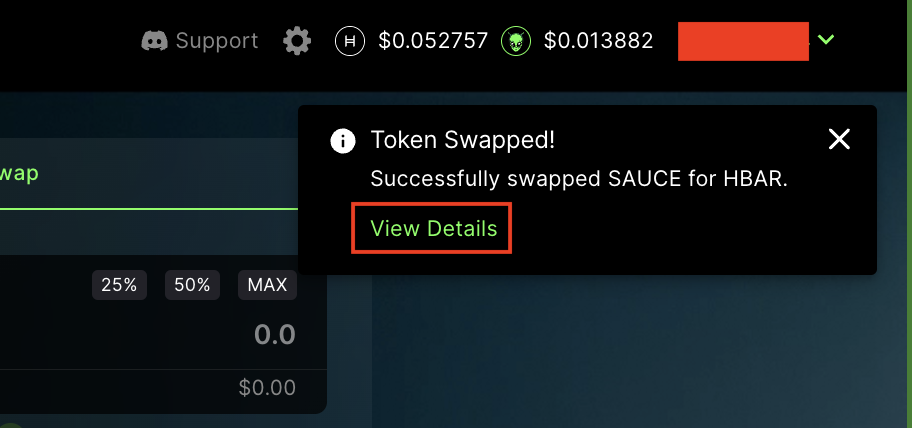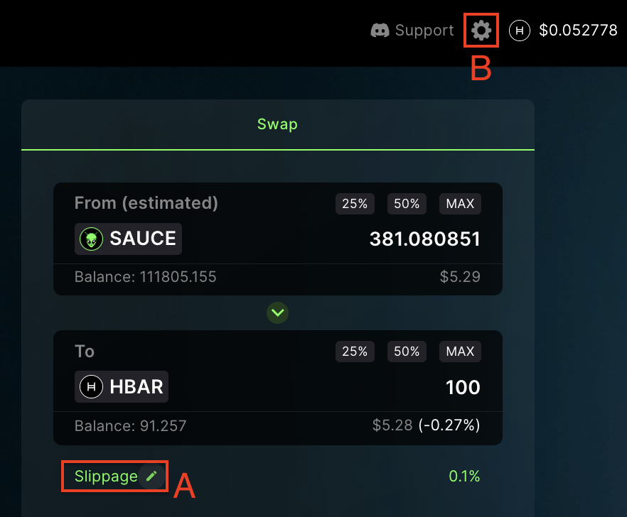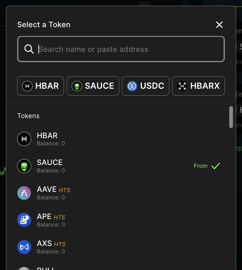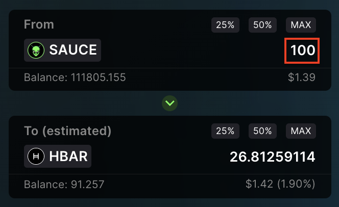 - Ensure you have sufficient HBAR for network fees and tokens to swap.
