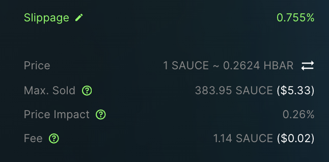 Max. Sold: The maximum amount of TokenA sold on a swap. This appears for